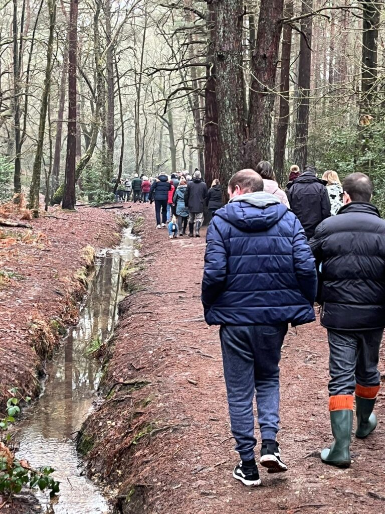 Participants of all ages took part in the walk, covering around two miles through mature woodland rich in wildlife and history. Despite muddy conditions in places, the atmosphere was positive and reflective, with many attendees commenting on the sense of calm, fresh air and wellbeing the site provides — freely accessible and close to home.
